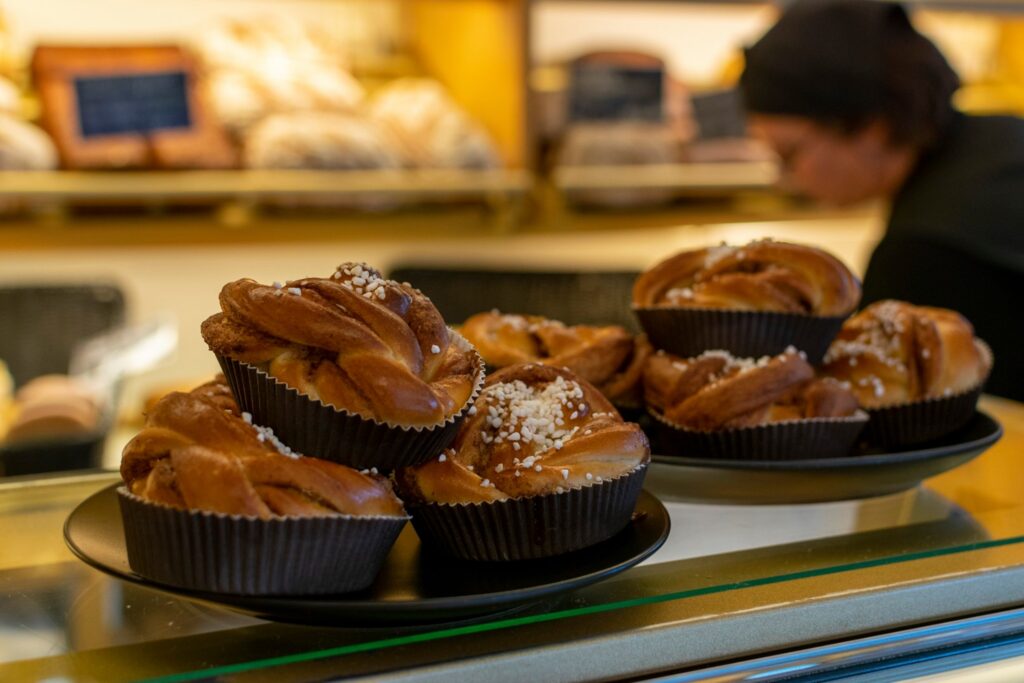I butiken kan du varje dag handla från ett stort sortiment av härliga frallor och rykande färska matbröd.